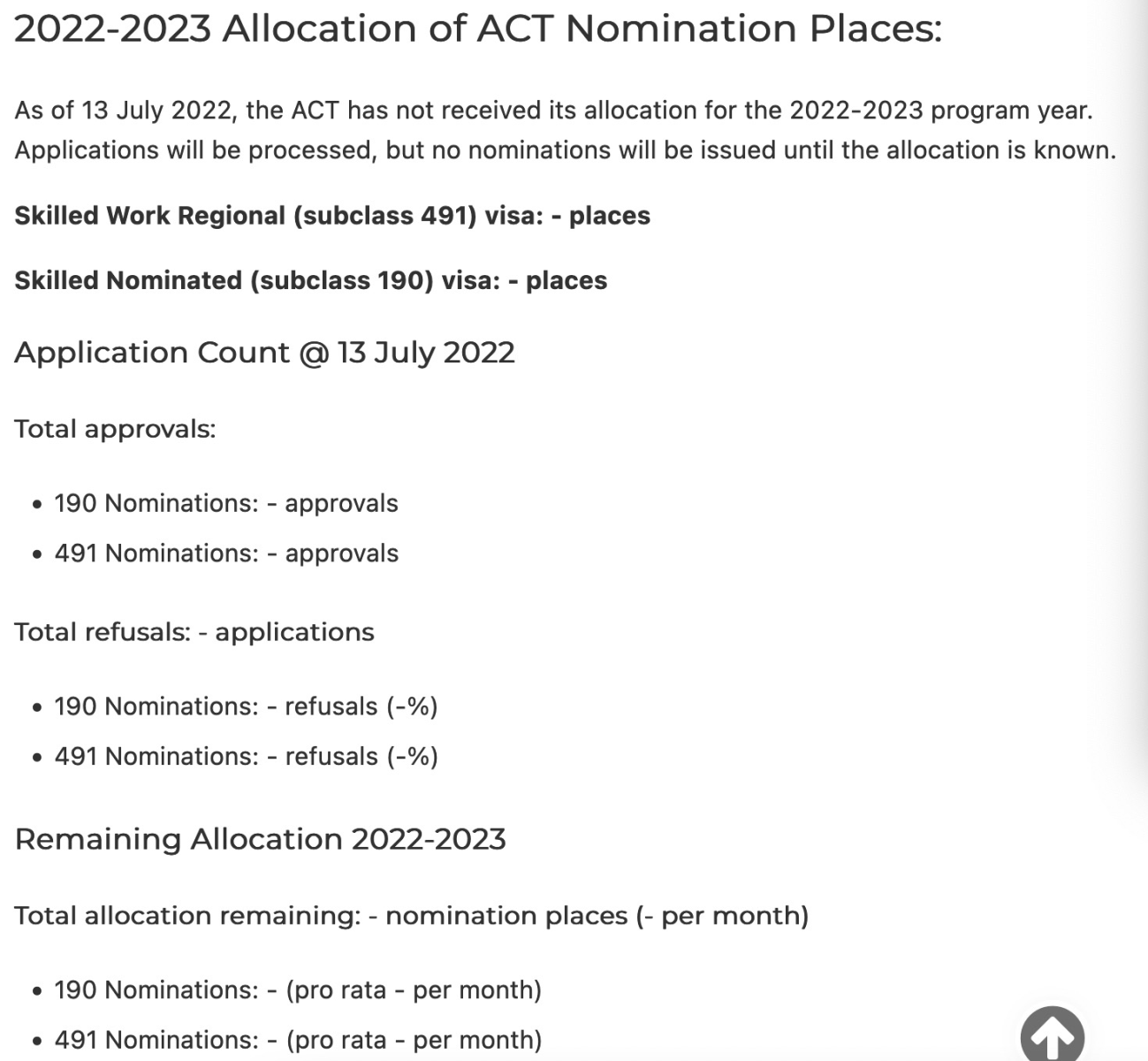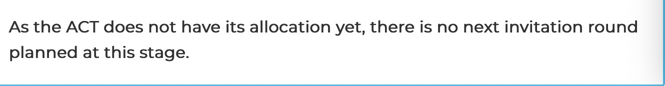 据ACT官网显示,截至2022年7月13日, ACT尚未收到2022-23财年的州担配额。申请将会被处理,但是在确定配额之前ACT不会发放任何名额。