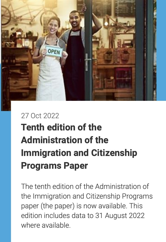 移民局官网10月27日更新,第十版《移民和公民计划管理》文件现已出版。本版包括截至2022年8月31日的数据,并概述了签证和公民计划的实施情况,包括为加快澳大利亚经济从COVID-19疫情的影响中复苏以及缓解技能和劳动力短缺所做出的努力。