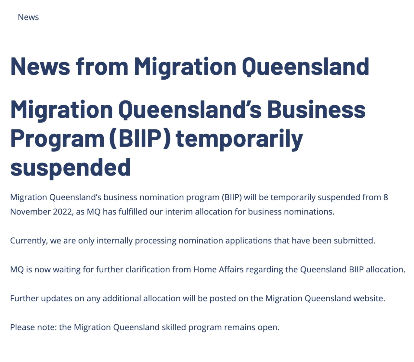 2. 昆州投资移民计划(BIIP)暂时用尽