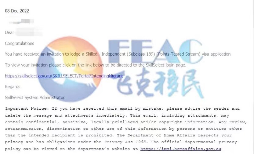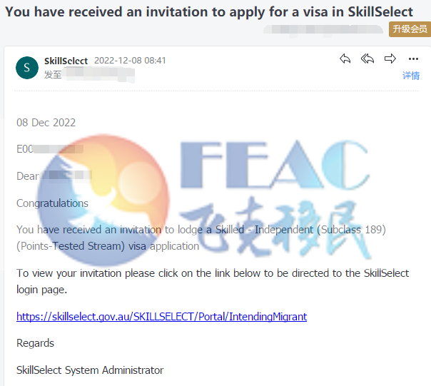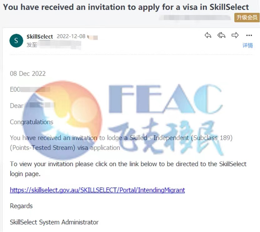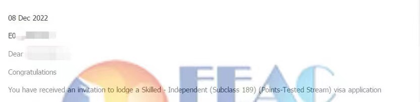 客户获邀分数65, 2022.10.14递交EOI,2022.12.8获邀。