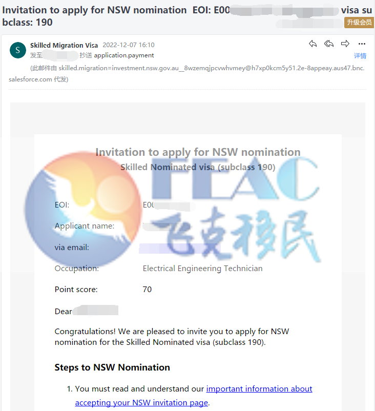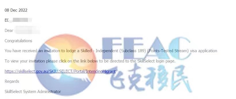 客户获邀分数70分, 2022.10.8递交EOI 2022.12.8获邀。