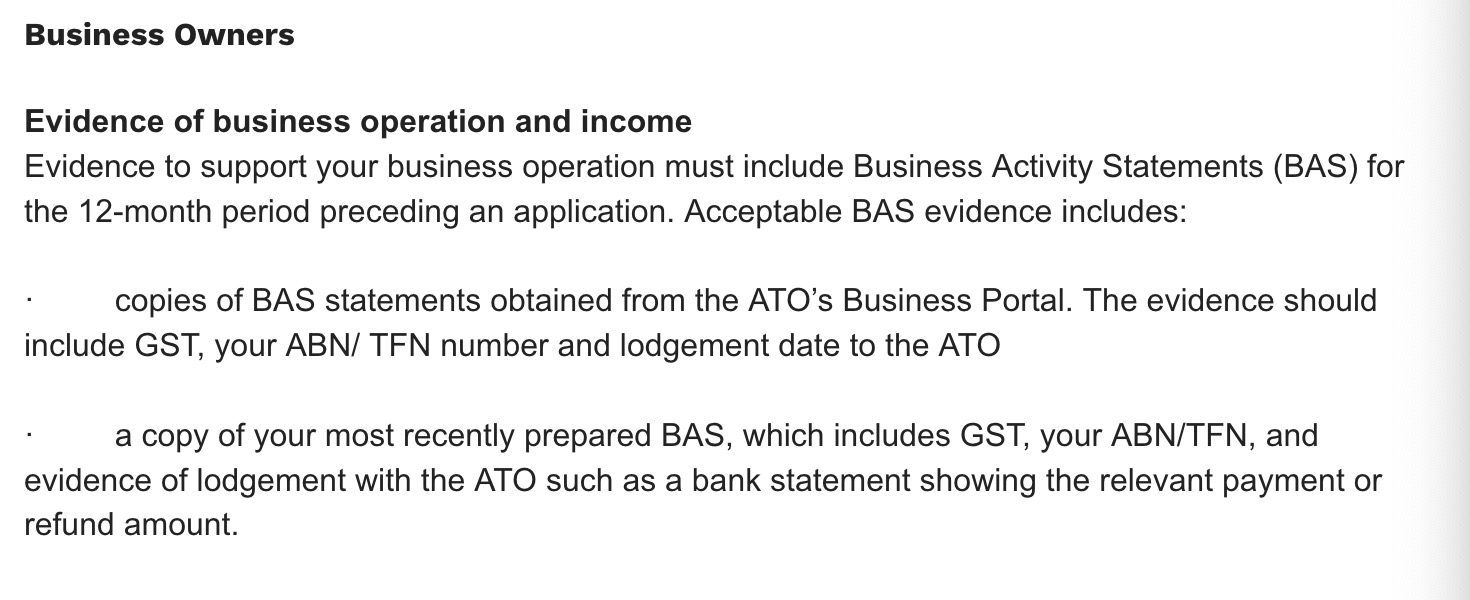 -申请人提交的材料必须包括申请前12隔越的商业活动报表(BAS)