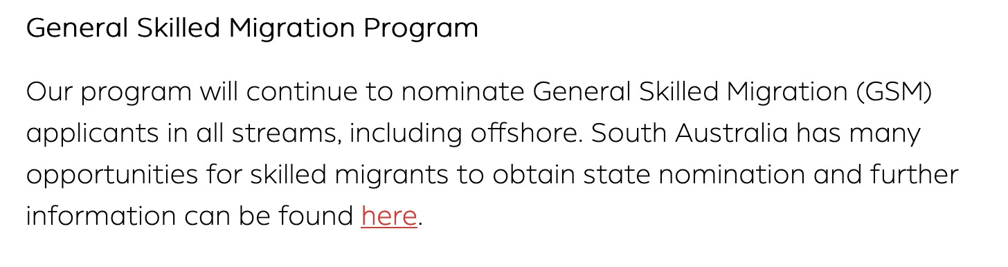 南澳州政府表示,将继续提名所有类型的一般技术移民GSM申请人,包括海外移民。南澳还有很多机会能让申请人获得提名。