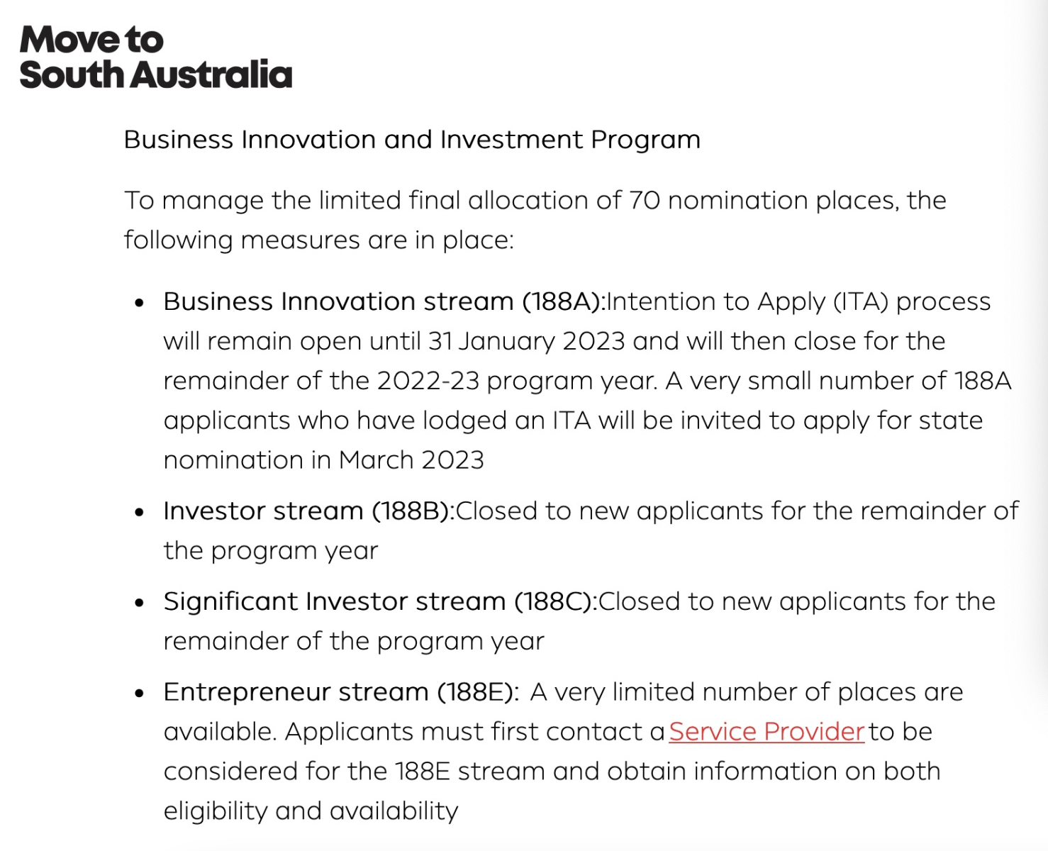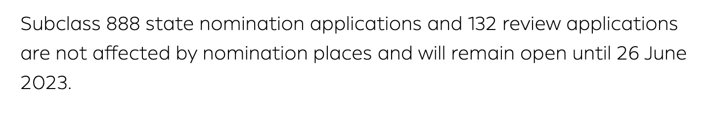 ITA流程将持续开放至2023年1月31日,在2022-23财年的剩余时间内关闭。极少数已提交ITA的188A申请人将被邀请在2023年3月申请州提名。
