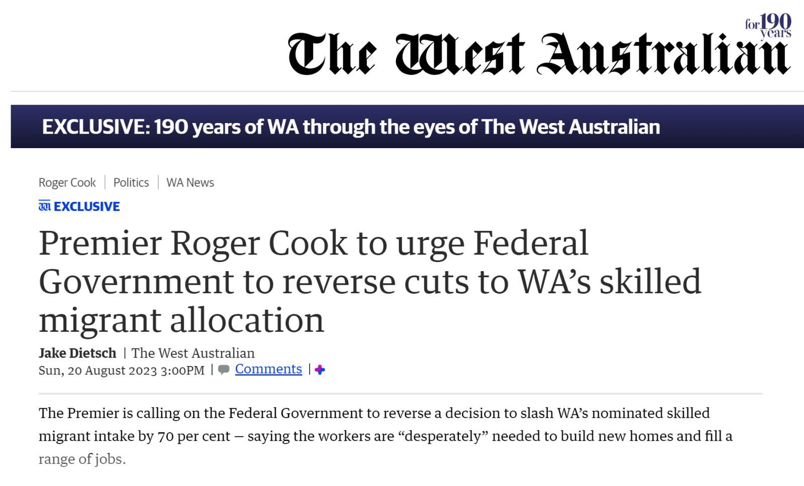 但是!西澳州长自然是不同意的,州长呼吁联邦政府推翻将西澳提名技术移民人数削减 70% 的决定,称“迫切”需要这些工人来建造新房屋并填补一系列工作岗位。