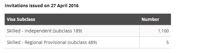 今日,移民局发布了4月27日EOI邀请结果数据。