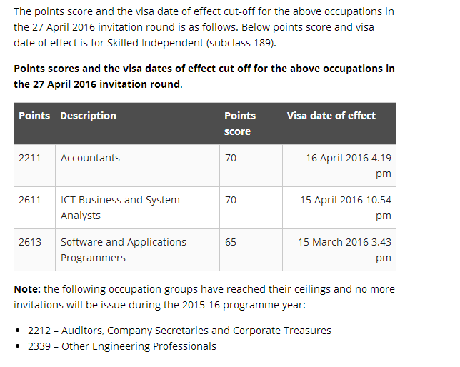 由于移民局收到以下职业的大量的EOI, 以下职业的邀请将每个月两次按比例来发放: