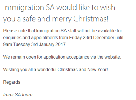 另南澳移民官网也发出圣诞放假通知: