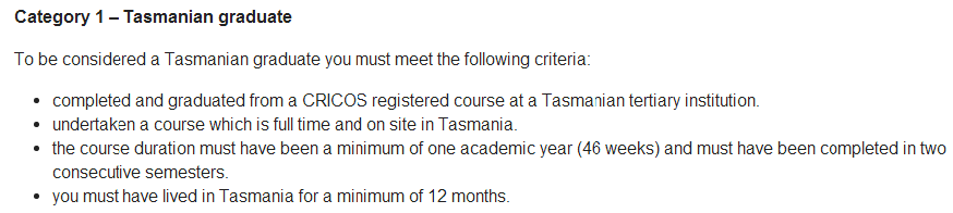 (1) 申请人需要在塔州完成46周以上的学习,并且必须毕业。之前的政策是只需要满足学习46周以上即可,现在还必须得毕业,两者缺一不可;